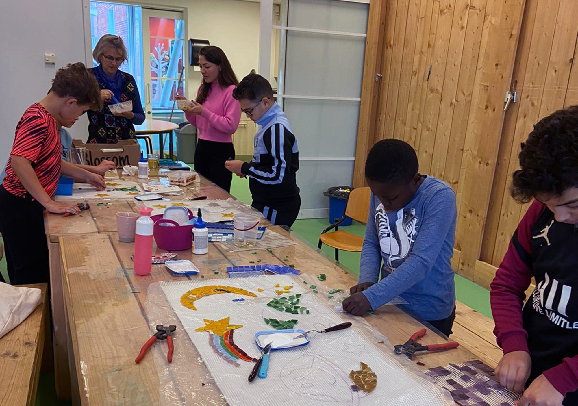Thanks to the contribution of Fonds 1999, the Move Foundation was able to carry out two Move- your-neighborhood projects in 2021. In these projects, children from a primary school acted with students from their city. The children discovered their talents and gained insight into how they can use these talents for their environment. In both projects the theme was ‘art and culture’. One of the projects was done with the Ariënschool in Utrecht. Children, students and an artist worked together to make the schoolyard more colorful by means of a mosaic artwork on a concrete bench. In Amsterdam, students from De Ster primary school, together with students from the Amsterdamsch Studenten Corps (Amsterdam Student Society), worked on a mural and homemade paintings to brighten up a shopping center in the area. All in all, the goals of bringing worlds together, discovering and deploying talents and developing creativity in these projects have been achieved.
